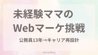 13年勤めた公務員を辞めた二児ママが、未経験からWebマーケターへ挑戦!キャリア再設計の理由やスクール受講の体験談をリアルに発信します。